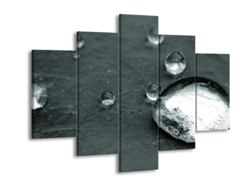 Canvas Schilderij Macro, Druppel | Grijs, Groen, Zwart | 150x105cm 5Luik