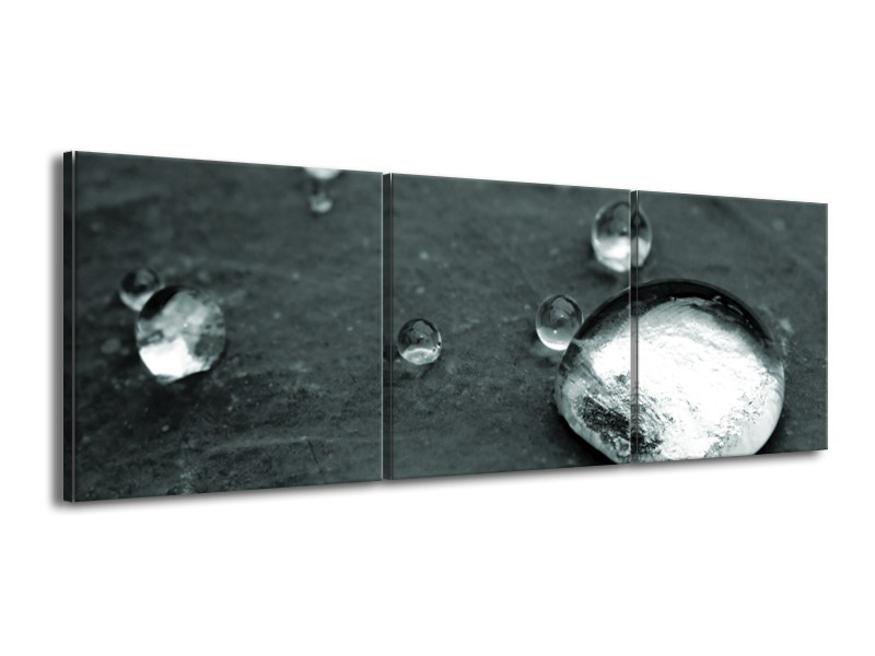 Canvas Schilderij Macro, Druppel | Grijs, Groen, Zwart | 150x50cm 3Luik