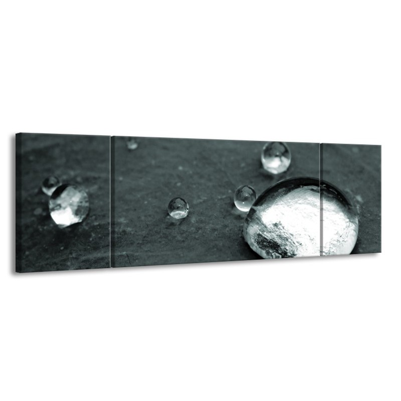 Canvas Schilderij Macro, Druppel | Grijs, Groen, Zwart | 170x50cm 3Luik