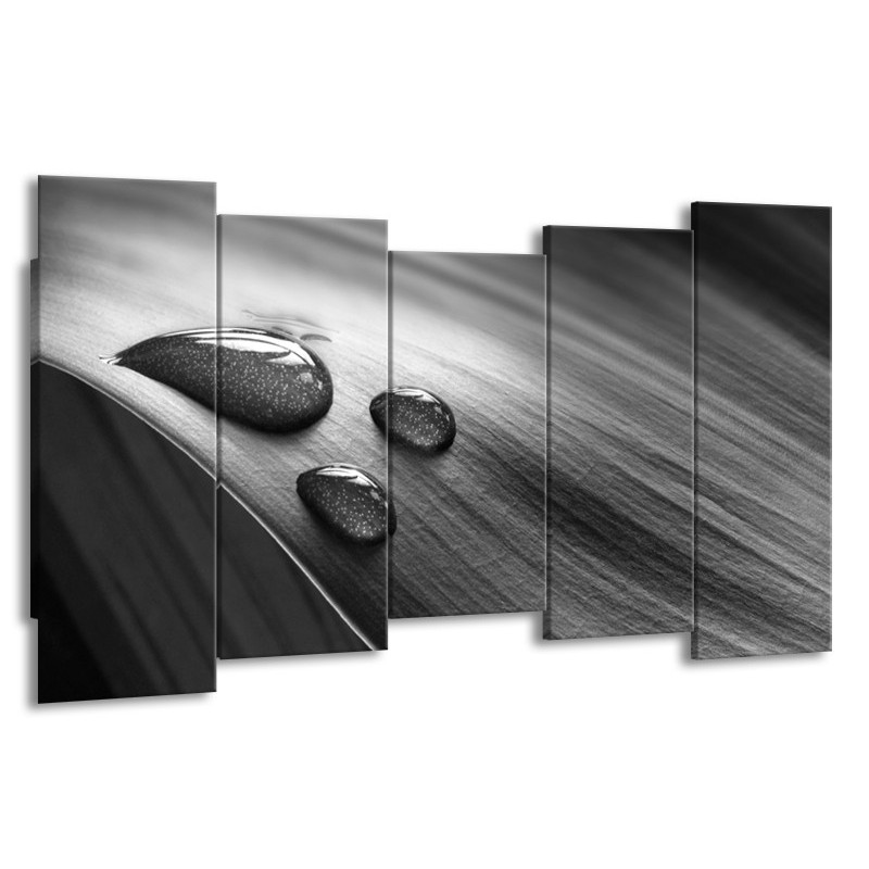 Canvas Schilderij Macro, Druppel | Grijs, Zwart | 150x80cm 5Luik