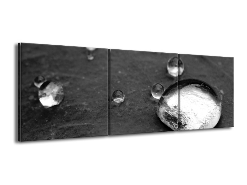 Canvas Schilderij Macro, Druppel | Zwart, Wit, Grijs | 150x50cm 3Luik