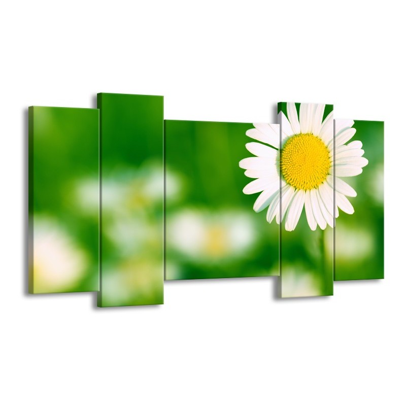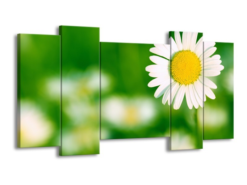 Canvas Schilderij Madeliefje, Bloemen | Groen, Wit, Geel | 120x65cm 5Luik
