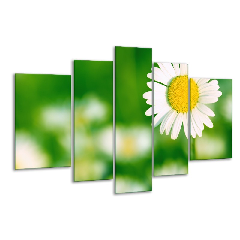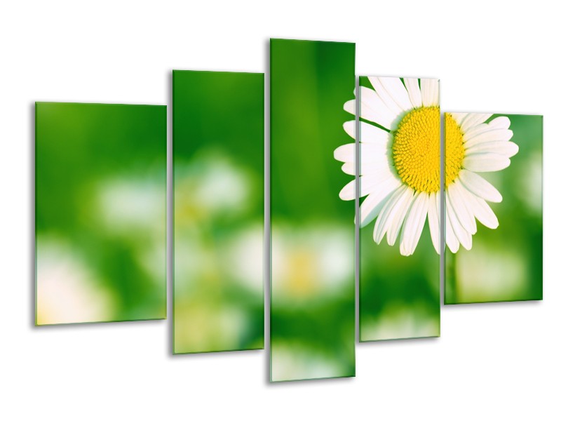 Canvas Schilderij Madeliefje, Bloemen | Groen, Wit, Geel | 170x100cm 5Luik