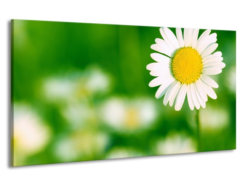 Canvas Schilderij Madeliefje, Bloemen | Groen, Wit, Geel | 190x100cm 1Luik
