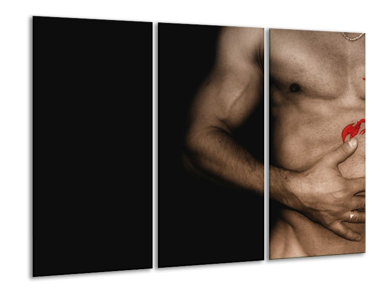 Canvas Schilderij Man, Akt | Zwart, Bruin, Rood | 120x80cm 3Luik