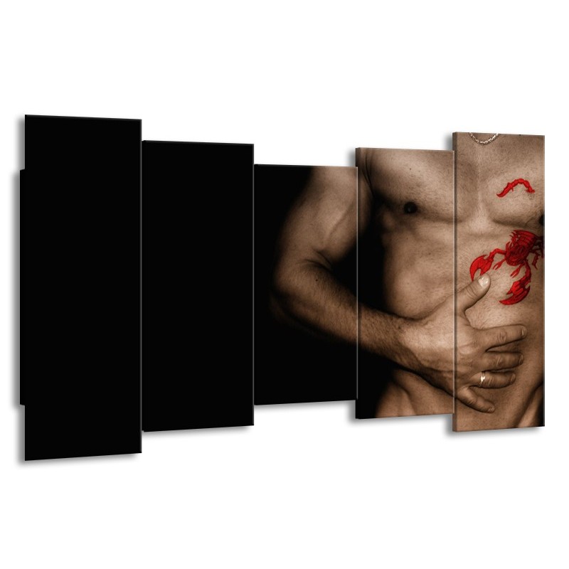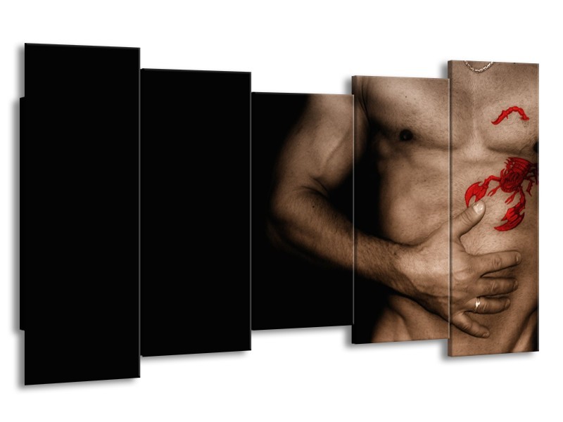 Canvas Schilderij Man, Akt | Zwart, Bruin, Rood | 150x80cm 5Luik