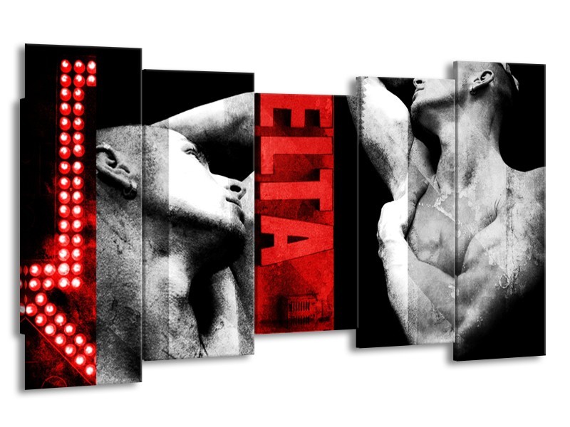 Canvas Schilderij Man, Kunst | Rood, Zwart, Grijs | 150x80cm 5Luik