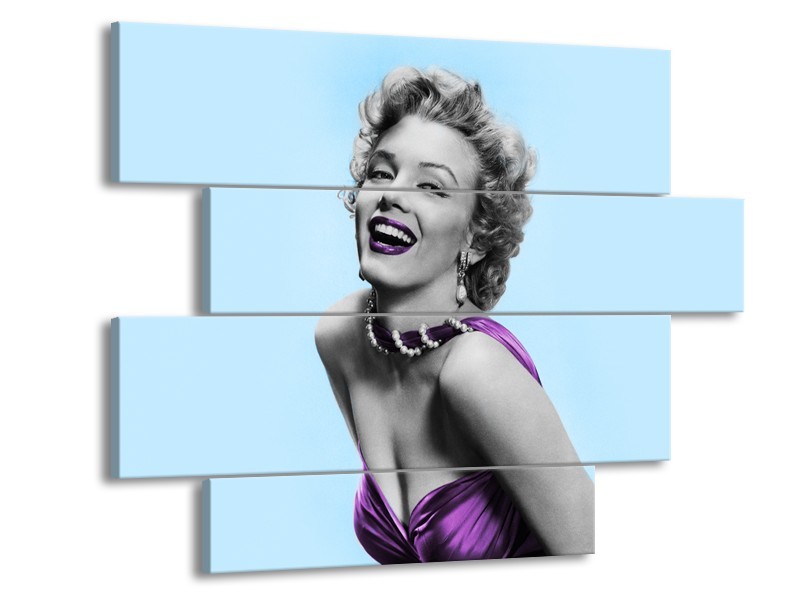 Canvas Schilderij Marilyn Monroe | Blauw, Paars, Grijs | 115x85cm 4Luik