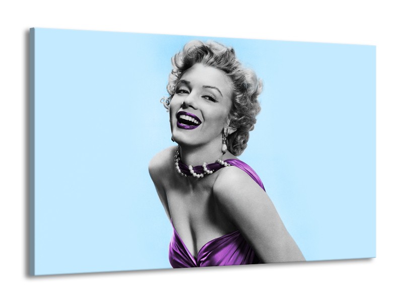 Canvas Schilderij Marilyn Monroe | Blauw, Paars, Grijs | 140x90cm 1Luik
