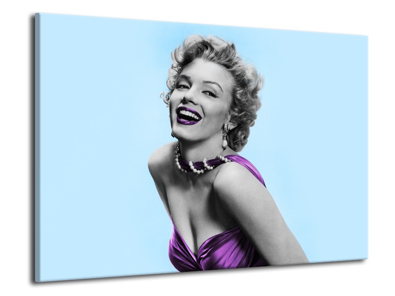 Canvas Schilderij Marilyn Monroe | Blauw, Paars, Grijs | 70x50cm 1Luik