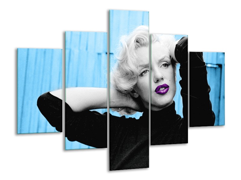 Canvas Schilderij Marilyn Monroe | Blauw, Zwart, Paars | 100x70cm 5Luik