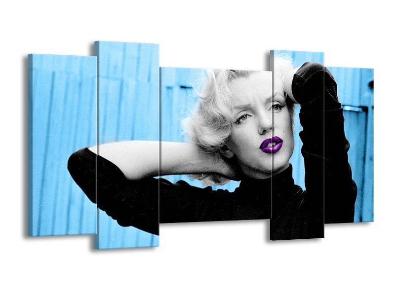 Canvas Schilderij Marilyn Monroe | Blauw, Zwart, Paars | 120x65cm 5Luik