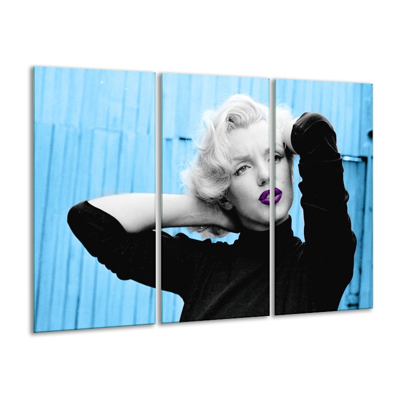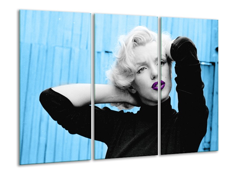 Canvas Schilderij Marilyn Monroe | Blauw, Zwart, Paars | 120x80cm 3Luik