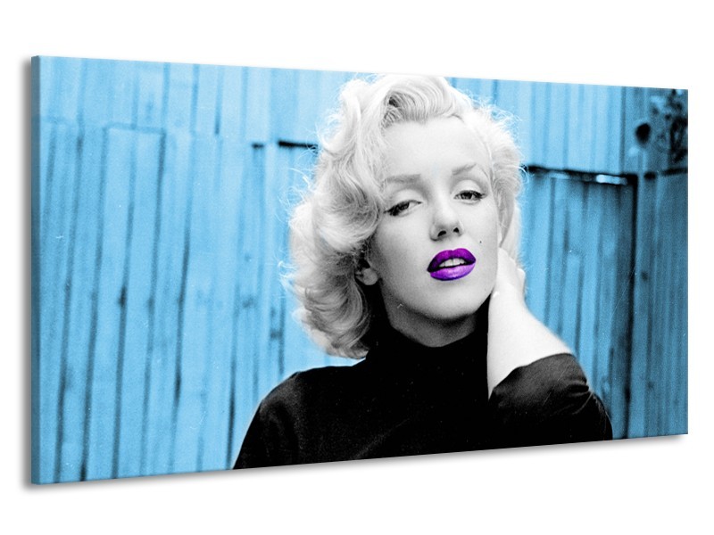 Canvas Schilderij Marilyn Monroe | Blauw, Zwart, Wit | 190x100cm 1Luik