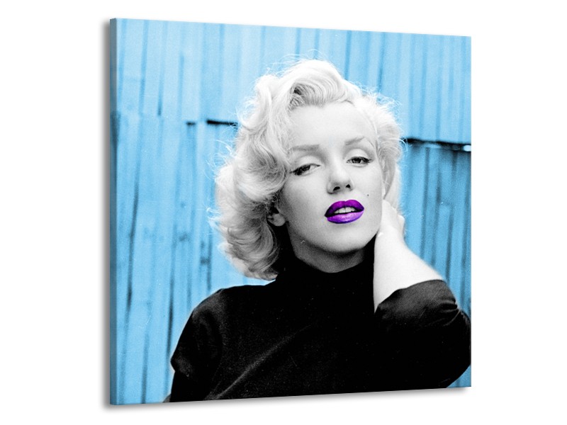 Canvas Schilderij Marilyn Monroe | Blauw, Zwart, Wit | 70x70cm 1Luik