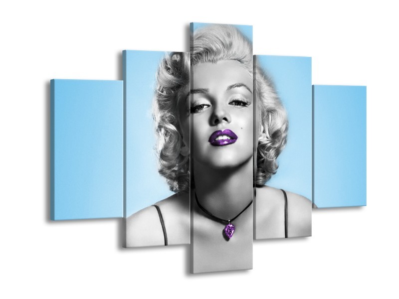 Canvas Schilderij Marilyn Monroe | Grijs, Blauw, Paars | 150x105cm 5Luik