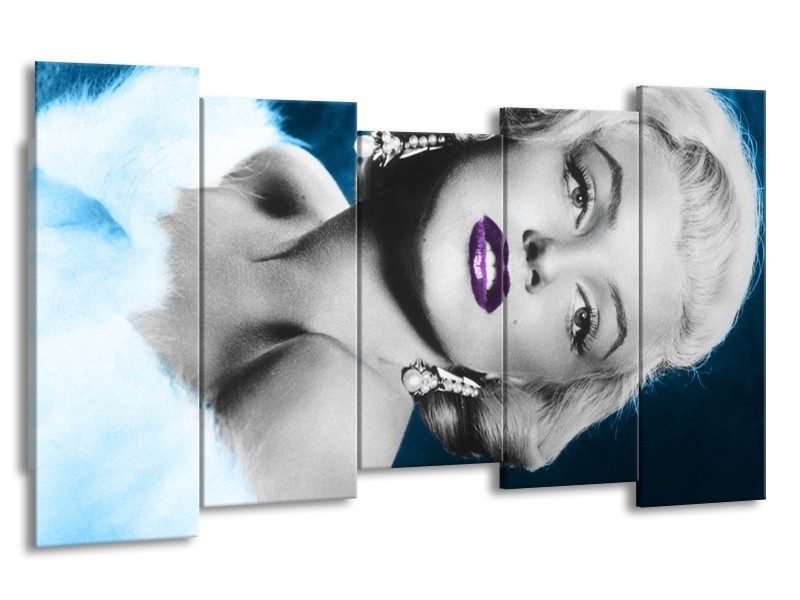 Canvas Schilderij Marilyn Monroe | Grijs, Blauw, Paars | 150x80cm 5Luik
