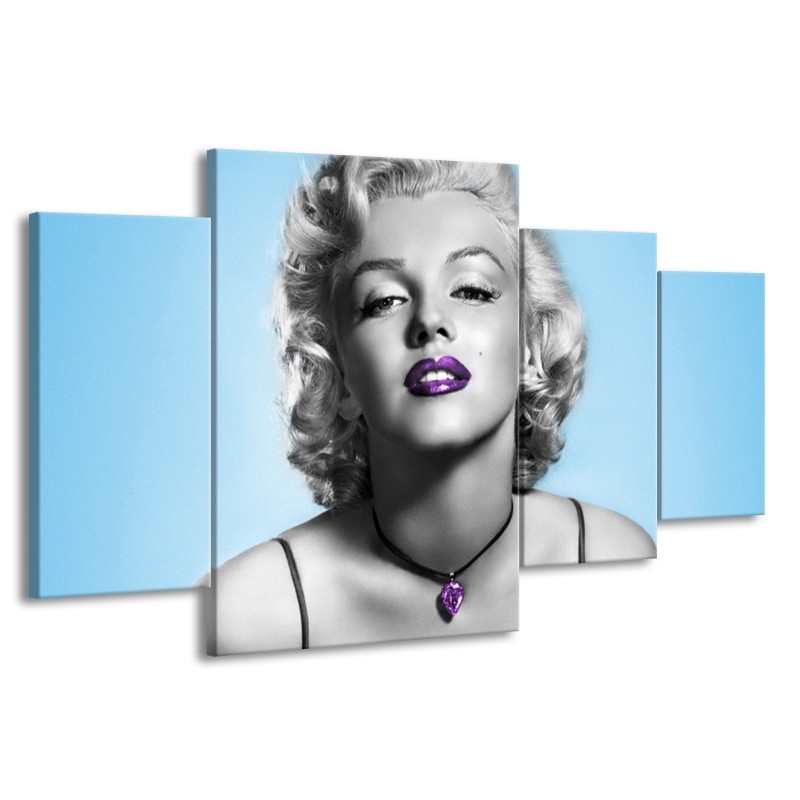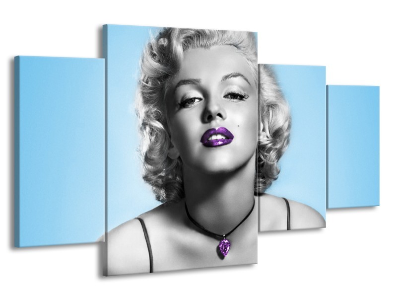 Canvas Schilderij Marilyn Monroe | Grijs, Blauw, Paars | 160x90cm 4Luik