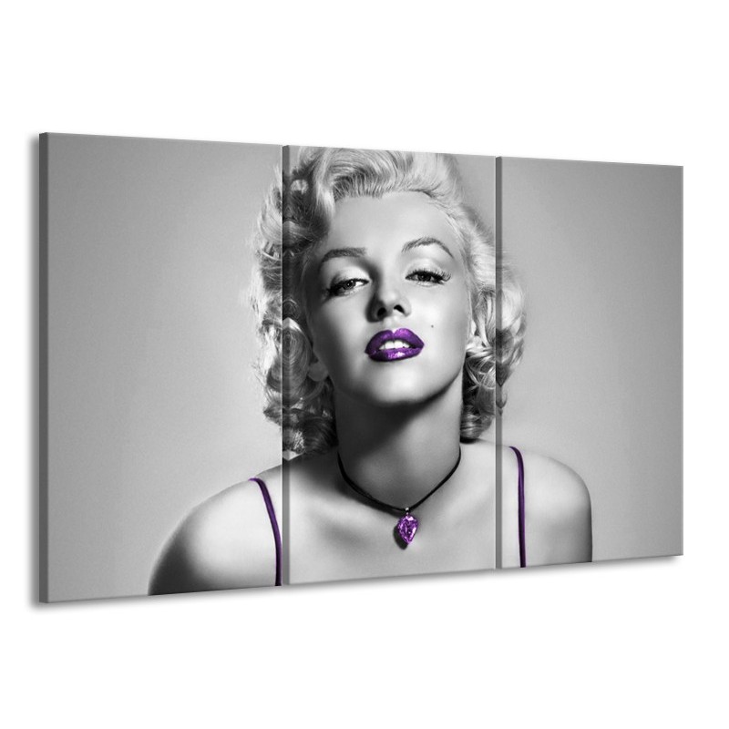 Canvas Schilderij Marilyn Monroe | Grijs, Paars, Zwart | 165x100cm 3Luik