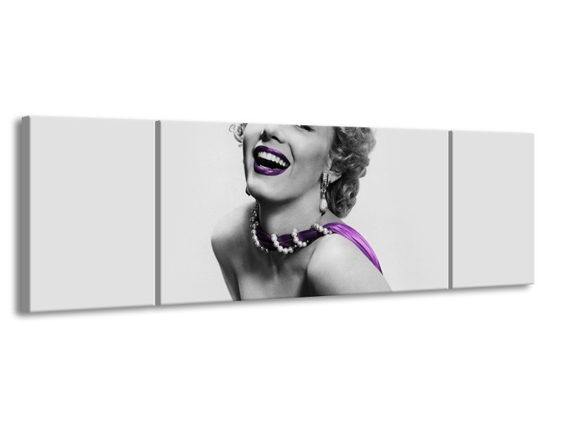 Canvas Schilderij Marilyn Monroe | Grijs, Paars, Zwart | 170x50cm 3Luik