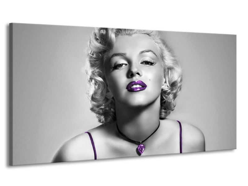 Canvas Schilderij Marilyn Monroe | Grijs, Paars, Zwart | 170x90cm 1Luik