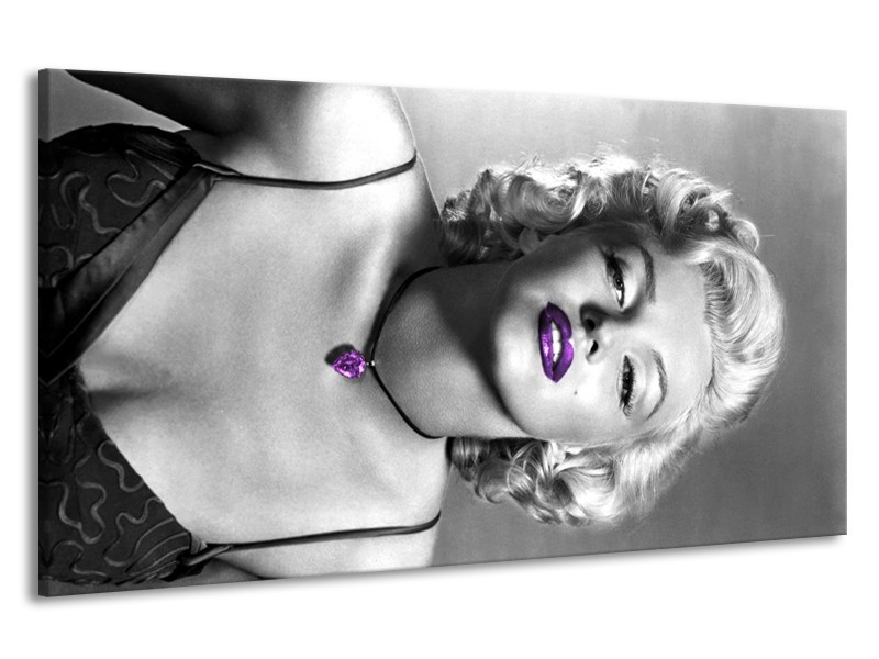 Canvas Schilderij Marilyn Monroe | Grijs, Paars, Zwart | 190x100cm 1Luik