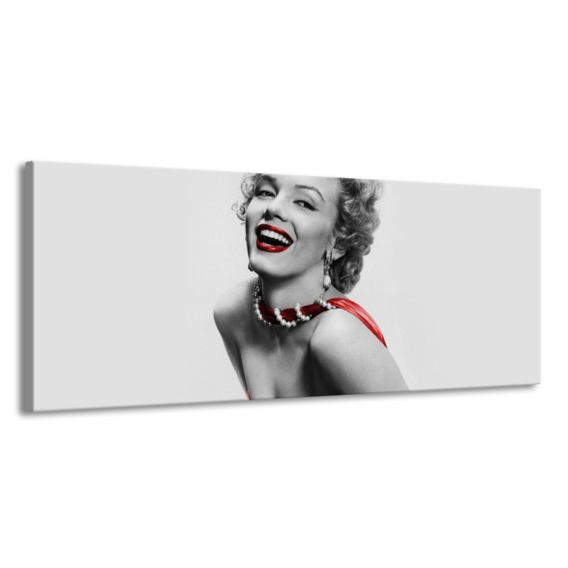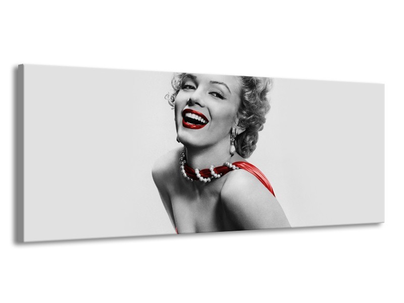 Canvas Schilderij Marilyn Monroe | Grijs, Rood, Zwart | 145x58cm 1Luik