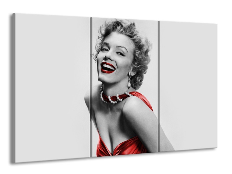Canvas Schilderij Marilyn Monroe | Grijs, Rood, Zwart | 165x100cm 3Luik