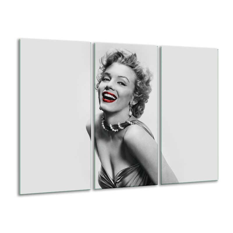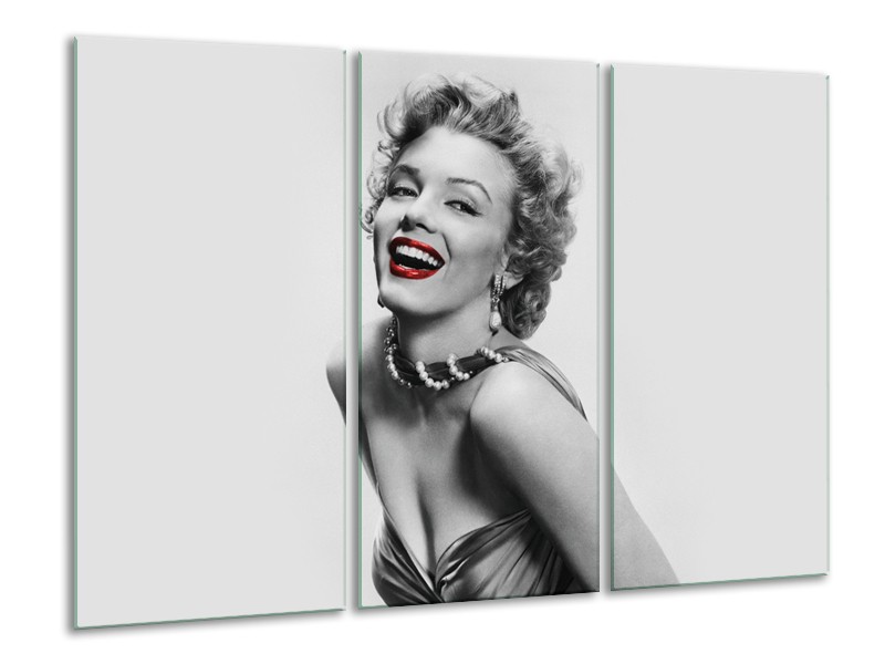 Canvas Schilderij Marilyn Monroe | Grijs, Wit, Rood | 120x80cm 3Luik