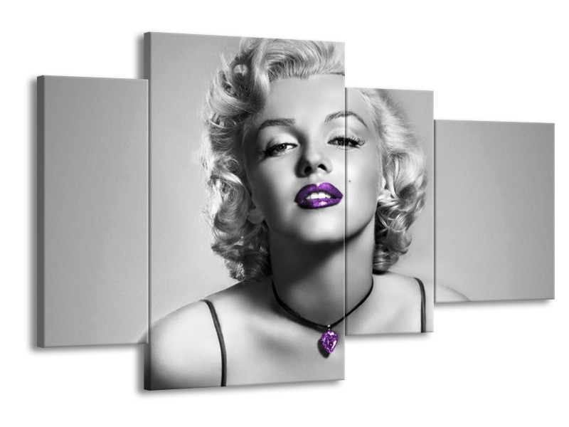 Canvas Schilderij Marilyn Monroe | Grijs, Zwart, Paars | 120x75cm 4Luik