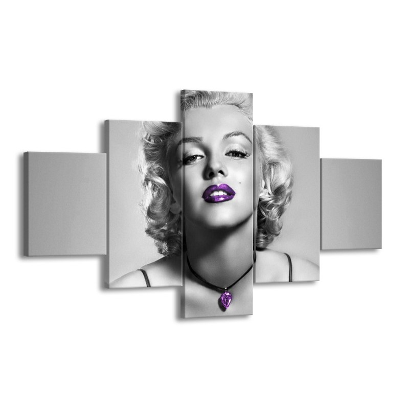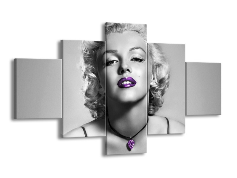 Canvas Schilderij Marilyn Monroe | Grijs, Zwart, Paars | 125x70cm 5Luik