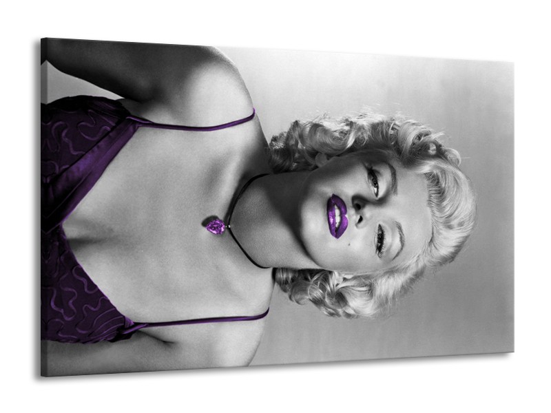 Canvas Schilderij Marilyn Monroe | Grijs, Zwart, Paars | 140x90cm 1Luik