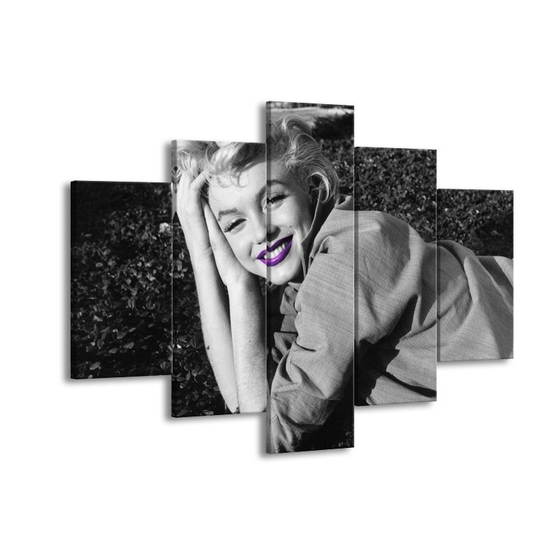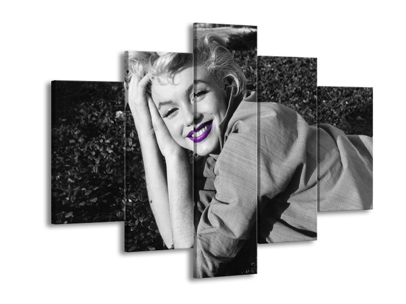 Canvas Schilderij Marilyn Monroe | Grijs, Zwart, Paars | 150x105cm 5Luik