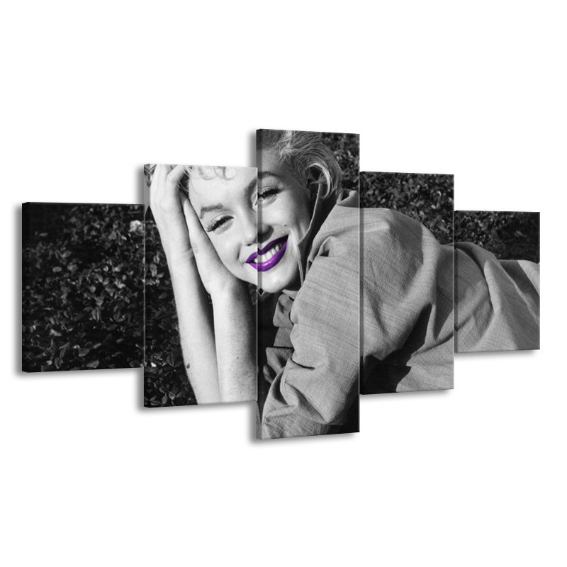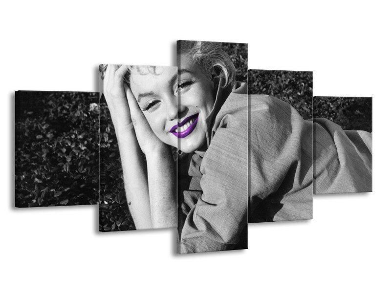 Canvas Schilderij Marilyn Monroe | Grijs, Zwart, Paars | 150x80cm 5Luik