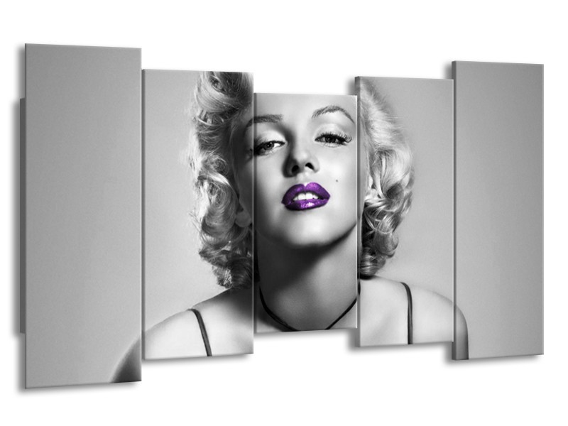 Canvas Schilderij Marilyn Monroe | Grijs, Zwart, Paars | 150x80cm 5Luik