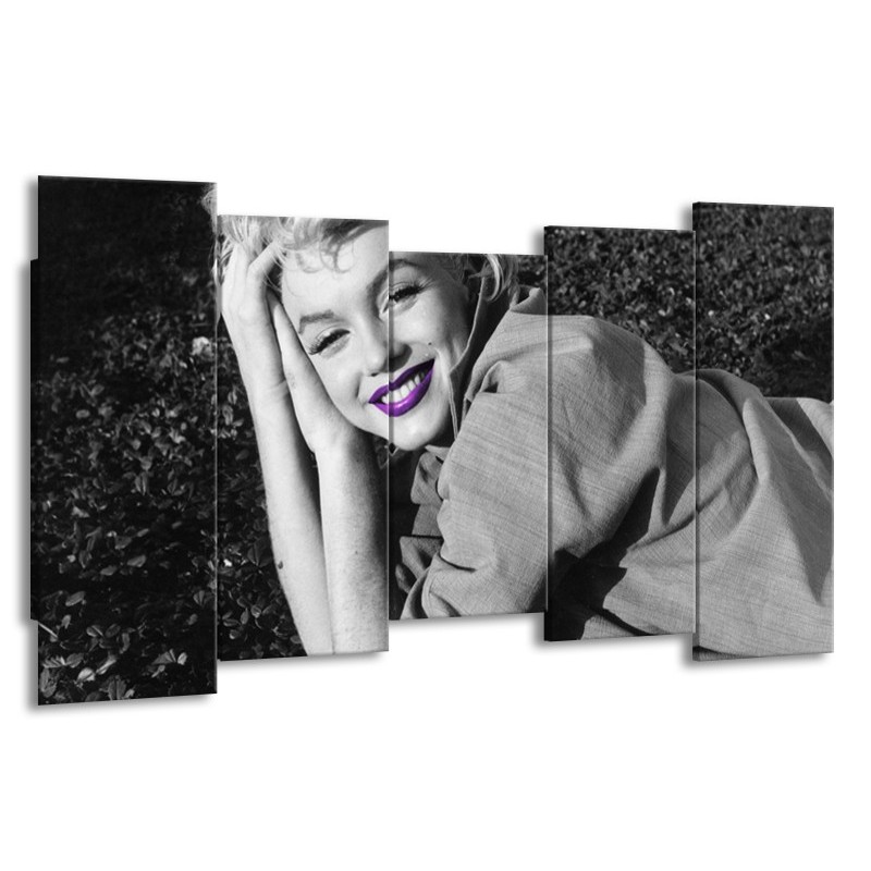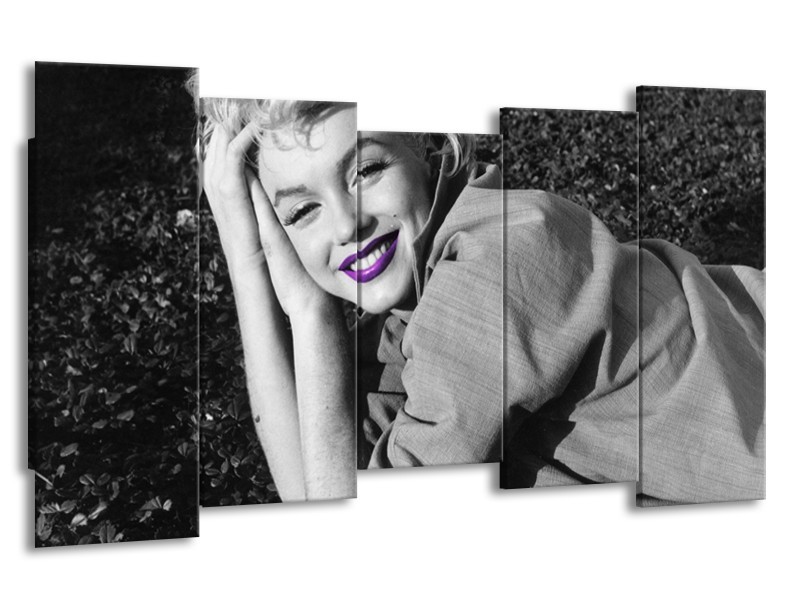 Canvas Schilderij Marilyn Monroe | Grijs, Zwart, Paars | 150x80cm 5Luik