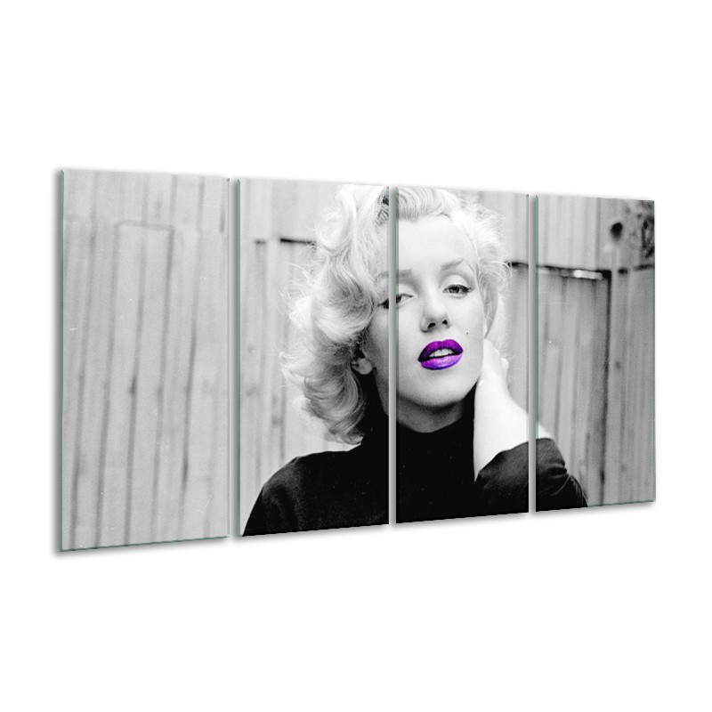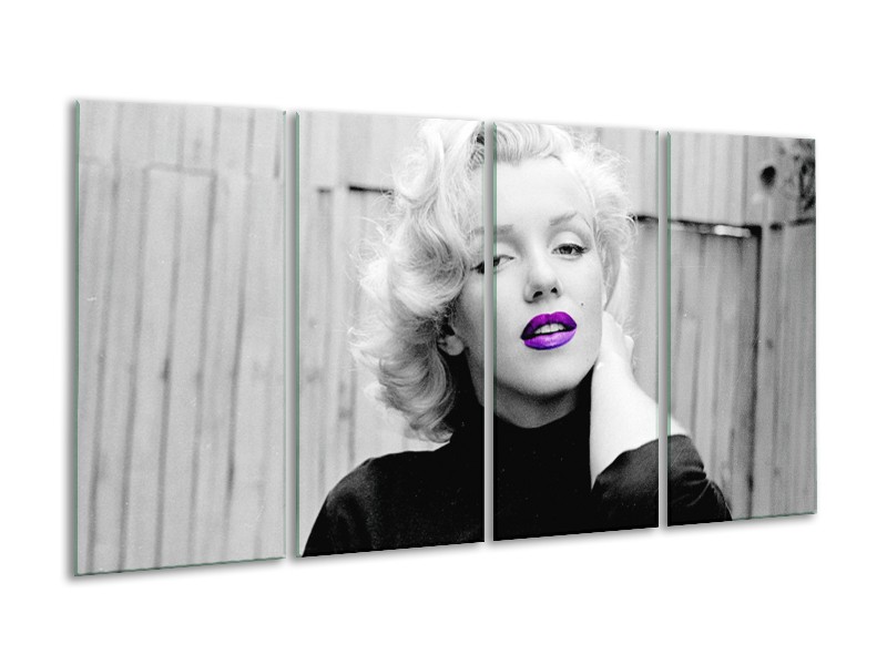 Canvas Schilderij Marilyn Monroe | Grijs, Zwart, Paars | 160x80cm 4Luik