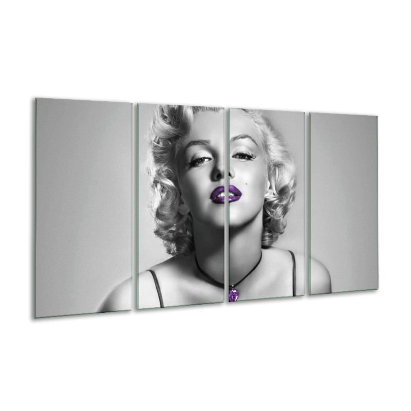 Canvas Schilderij Marilyn Monroe | Grijs, Zwart, Paars | 160x80cm 4Luik