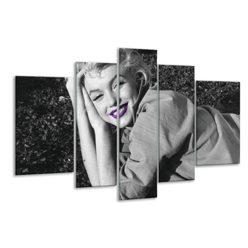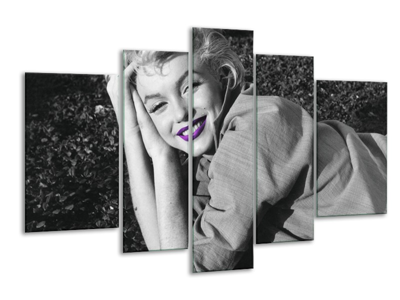 Canvas Schilderij Marilyn Monroe | Grijs, Zwart, Paars | 170x100cm 5Luik