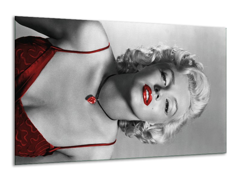 Canvas Schilderij Marilyn Monroe | Grijs, Zwart, Rood | 120x70cm 1Luik
