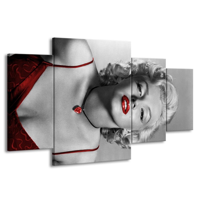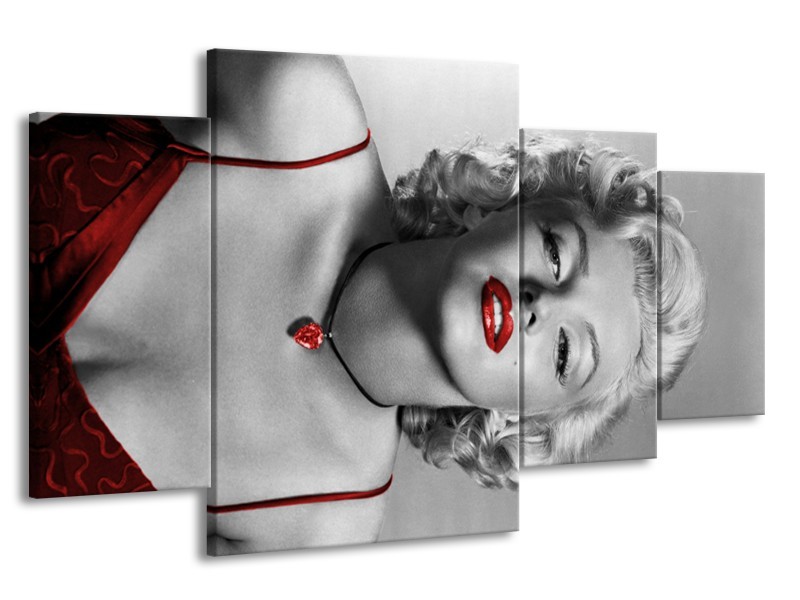 Canvas Schilderij Marilyn Monroe | Grijs, Zwart, Rood | 160x90cm 4Luik