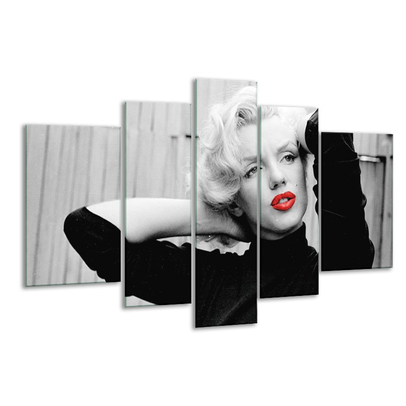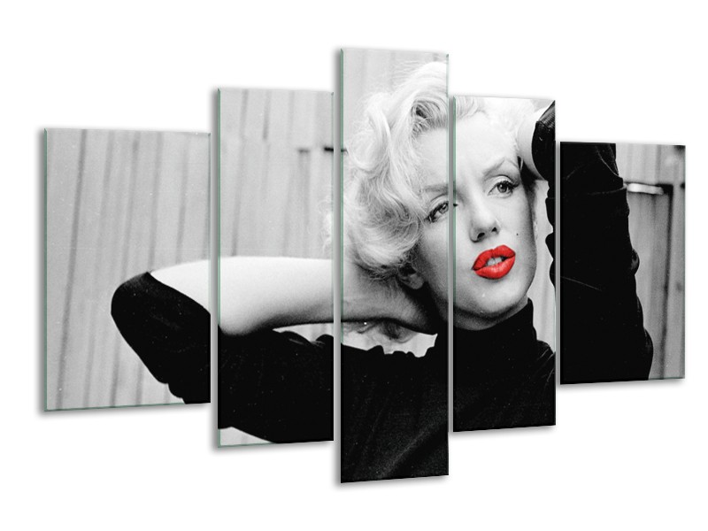 Canvas Schilderij Marilyn Monroe | Grijs, Zwart, Rood | 170x100cm 5Luik