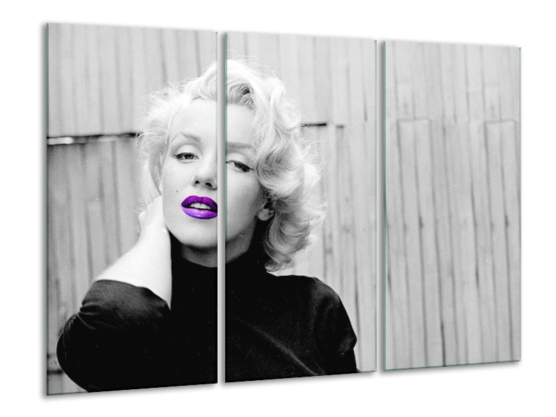 Canvas Schilderij Marilyn Monroe, Muziek | Grijs, Paars, Zwart | 120x80cm 3Luik