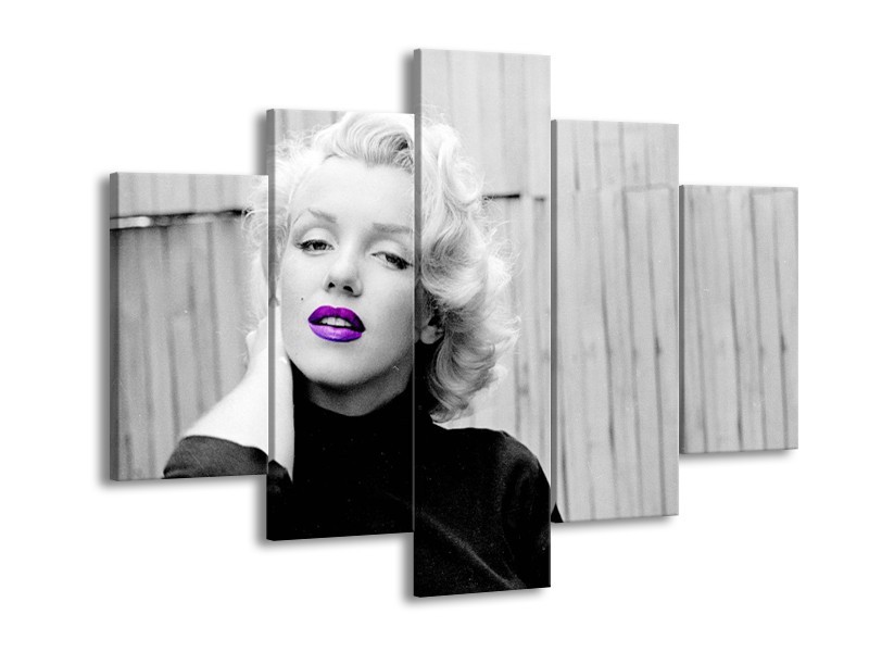 Canvas Schilderij Marilyn Monroe, Muziek | Grijs, Paars, Zwart | 150x105cm 5Luik