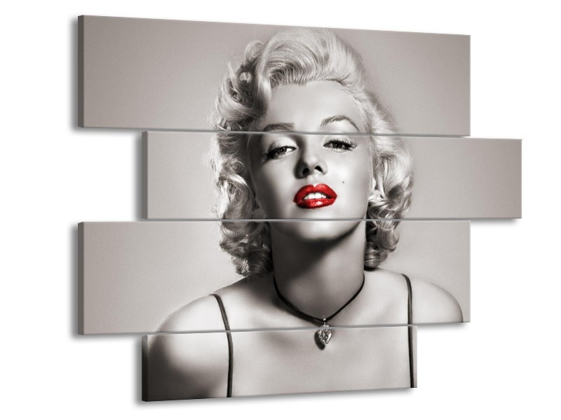 Canvas Schilderij Marilyn Monroe | Sepia, Rood, Grijs | 115x85cm 4Luik