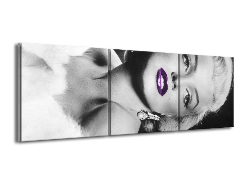 Canvas Schilderij Marilyn Monroe | Zwart, Grijs, Paars | 150x50cm 3Luik