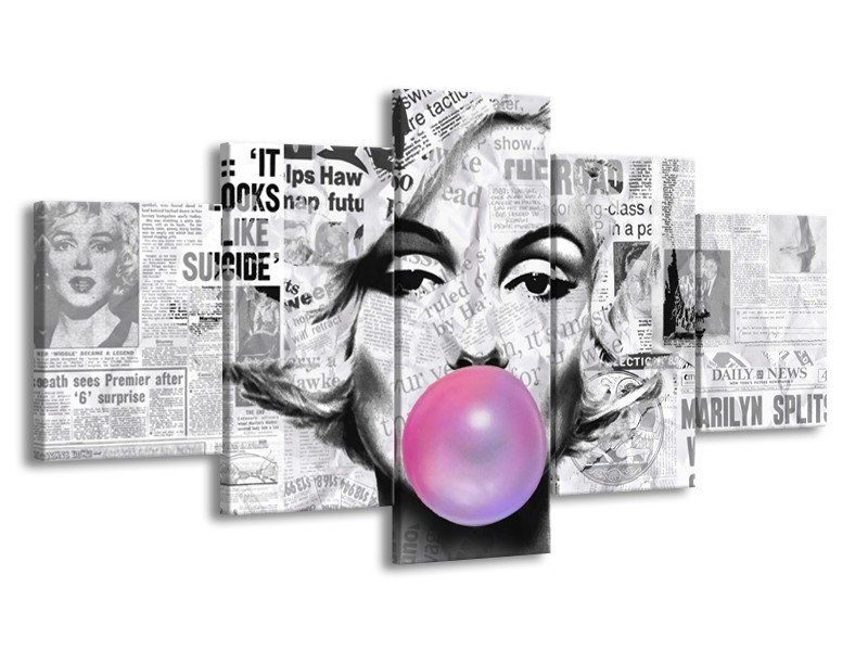 Canvas Schilderij Marilyn Monroe | Zwart, Grijs, Paars | 150x80cm 5Luik