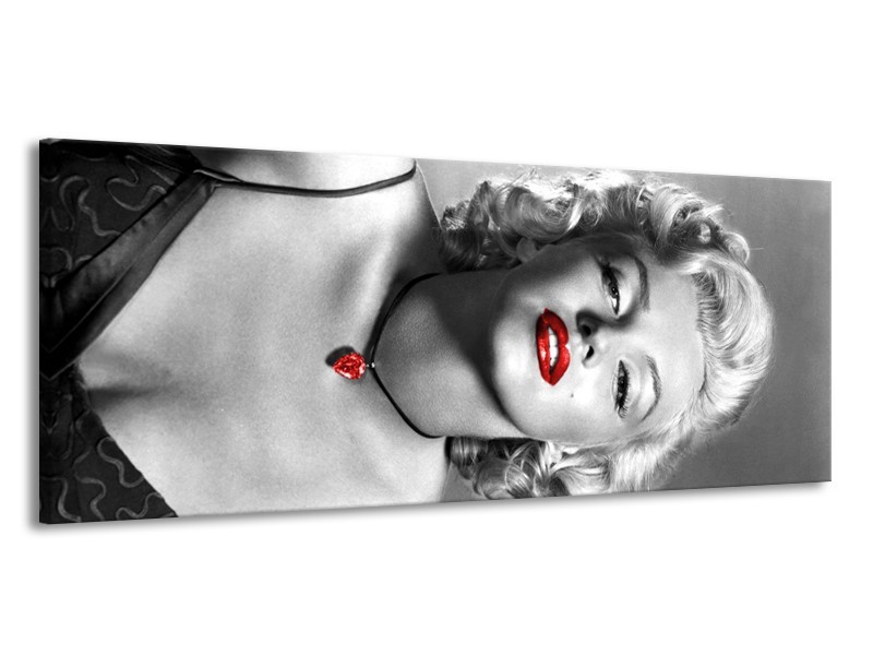 Canvas Schilderij Marilyn Monroe | Zwart, Grijs, Rood | 145x58cm 1Luik