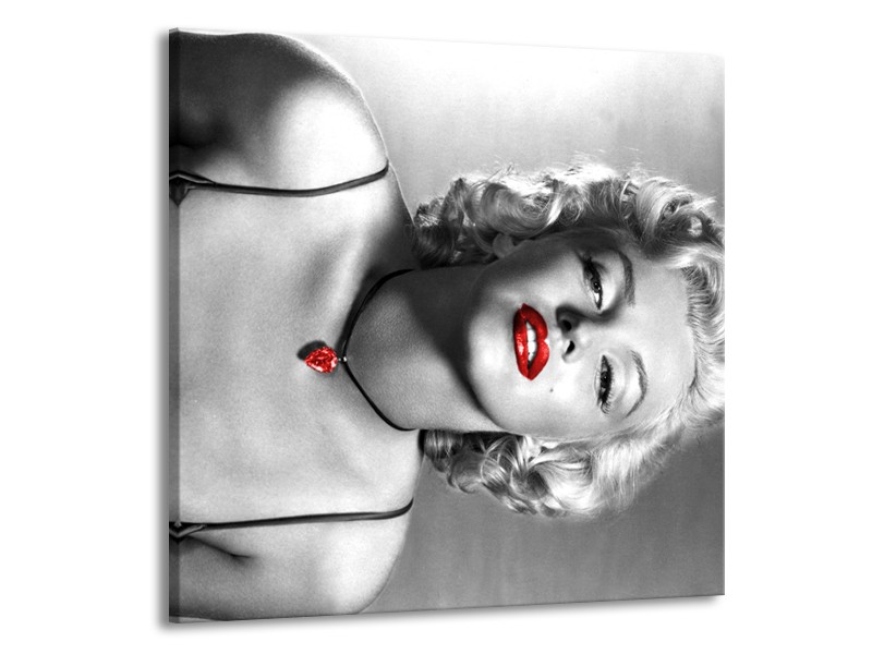 Canvas Schilderij Marilyn Monroe | Zwart, Grijs, Rood | 50x50cm 1Luik