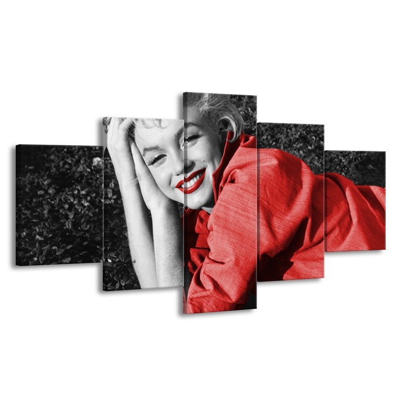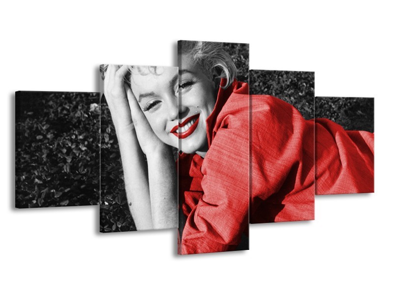 Canvas Schilderij Marilyn Monroe | Zwart, Rood, Grijs | 150x80cm 5Luik